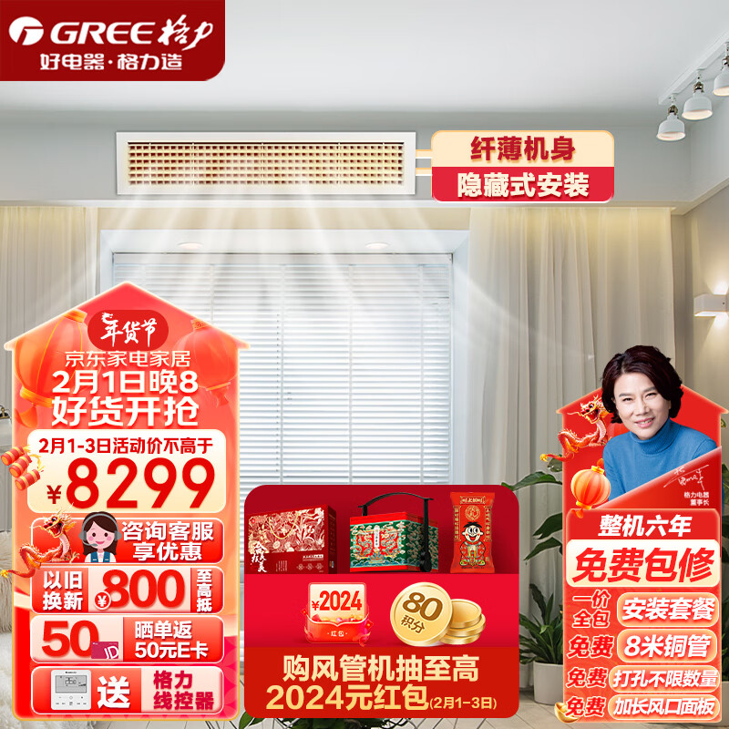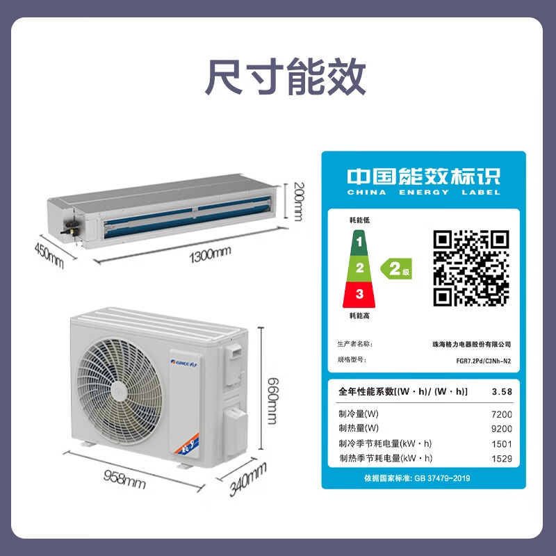 格力(GREE)中央空调 风管机一拖一 3匹家用嵌入式空调 直流变频FGR7.2Pd/C3Nh-N2 京仓派送(一价全包)价格:7598.00元!