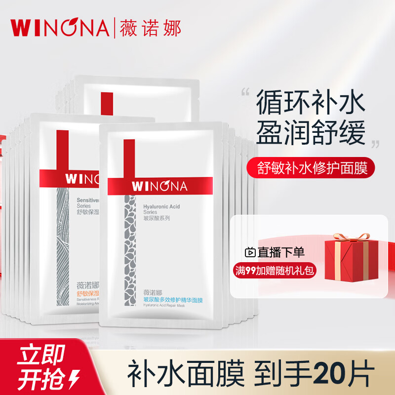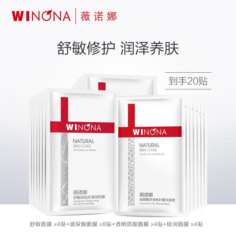 薇诺娜舒敏补水修护保湿面膜20片套装敏感肌护肤品化妆品敏感肌价格:209.00元!