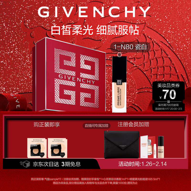 纪梵希(Givenchy)明星柔光粉底液1-N80 30ml暗皮救星持久遮瑕情人节新年礼物送女友价格:630.00元!