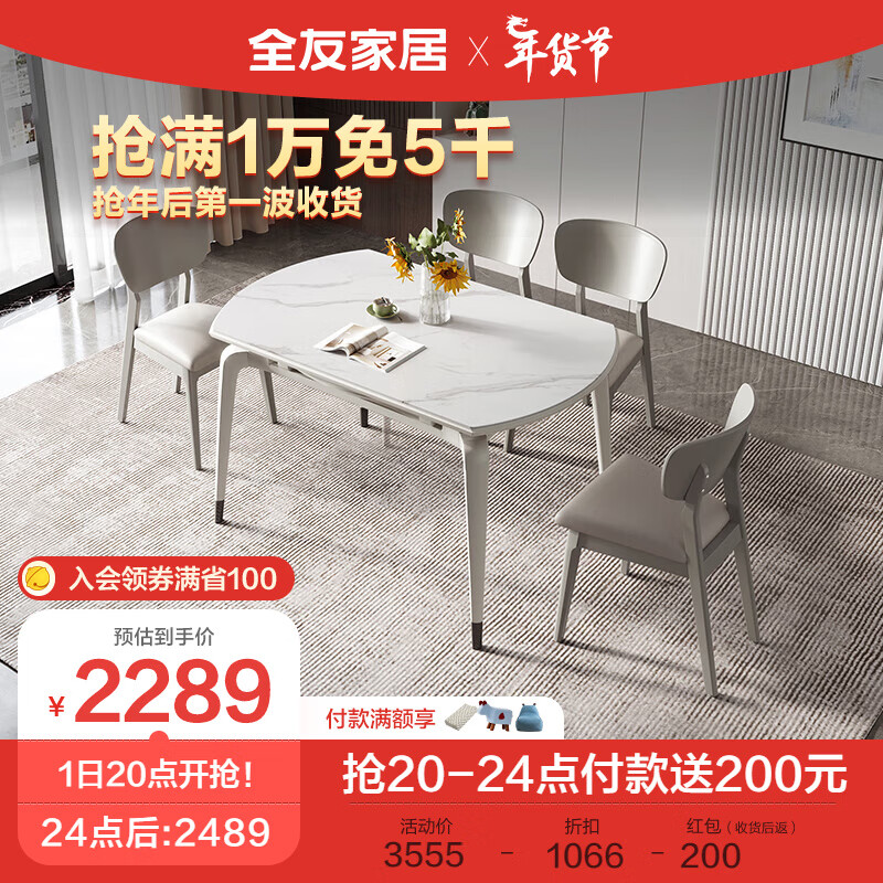 全友家居 餐桌现代简约岩板餐桌可圆可方伸缩功能吃饭桌子家具DW1121价格:3555.71元!