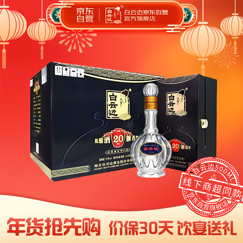 白云边二十年陈酿 浓酱兼香型白酒 53度500ml*6瓶整箱装 过年送礼价格:2700.00元!