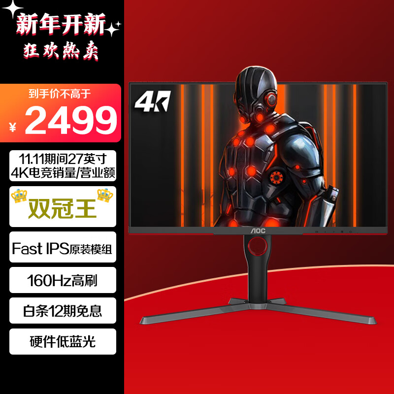 AOC 27英寸 4K高清 160Hz IPS快速液晶1ms HDR400 微边框 硬件低蓝光 PS4游戏电竞电脑显示器 U27G3X价格:3499.00元!