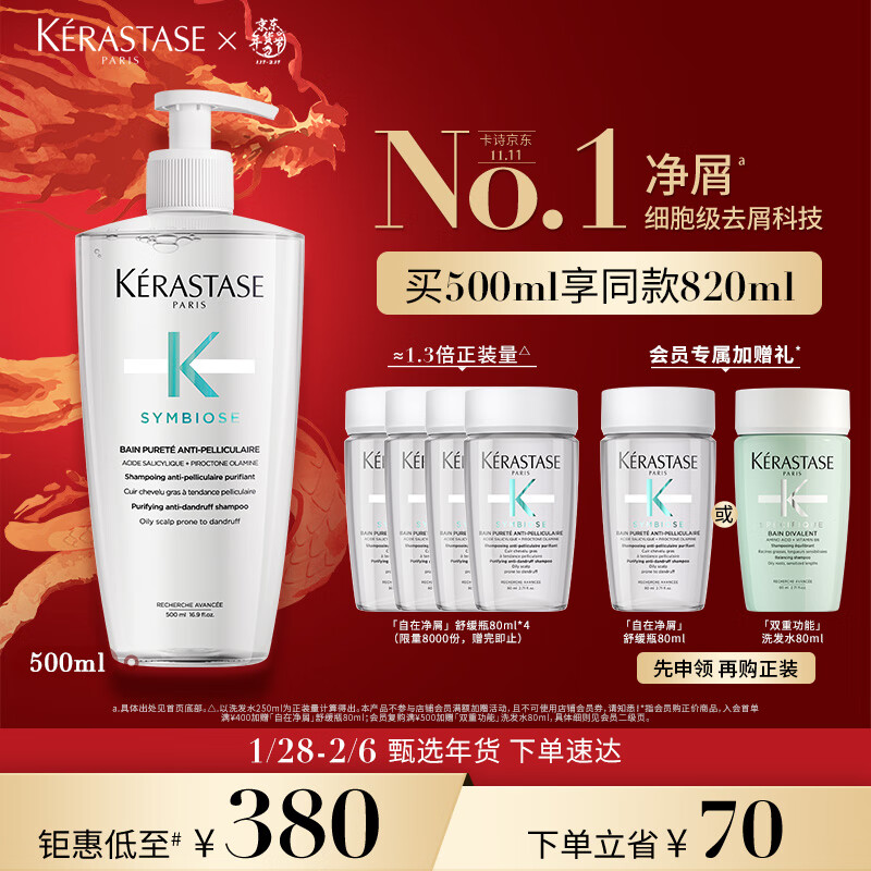 卡诗自在瓶洗发水500ml去屑控油止痒蓬松清爽维稳深层清洁维稳头皮价格:380.00元!