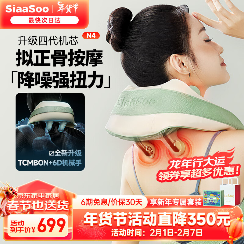 象术(SIAASOO)颈椎按摩器颈部按摩仪颈椎按摩仪肩颈按摩器颈部腰部按摩枕披肩斜方肌 父母男女朋友年会新年礼物 N4按摩披肩【浅岛绿】价格:1049.00元!