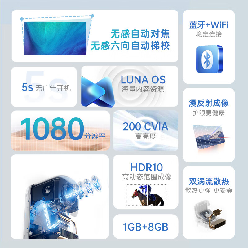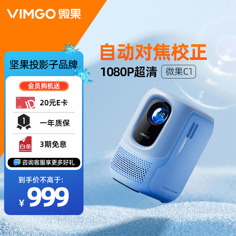 微果(VIMGO)C1投影仪家用家庭影院(物理1080P 自动对焦 自动梯形矫正)晴空蓝价格:999.00元!