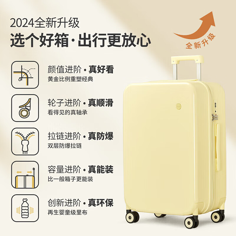 米熙mixi杆箱子行李箱女旅行箱包男密码箱高颜值登机箱20英寸云雀黄价格:389.00元!