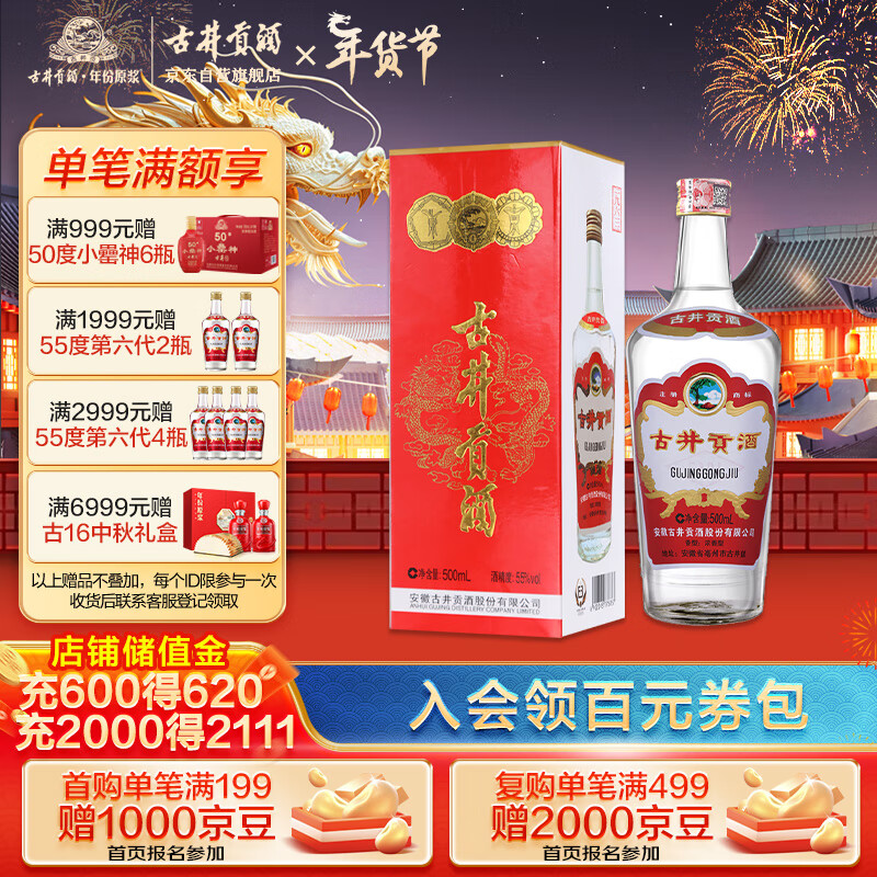 古井贡酒 1963 浓香型白酒 55度500ml*1瓶 年货送礼价格:706.00元!