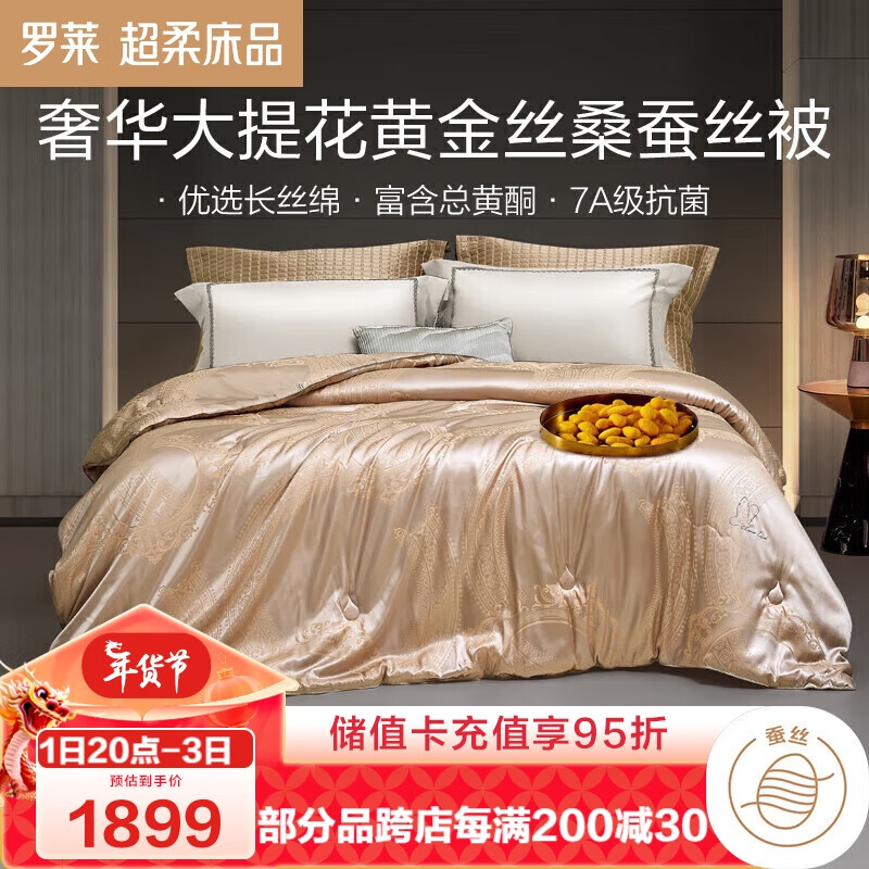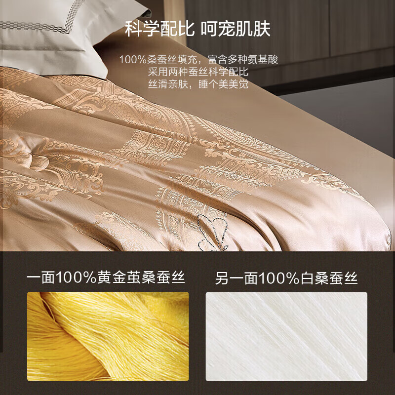 罗莱家纺 琅嬛金玉 100%桑蚕丝冬被子 5.8斤150*215cm 金色价格:2063.10元!