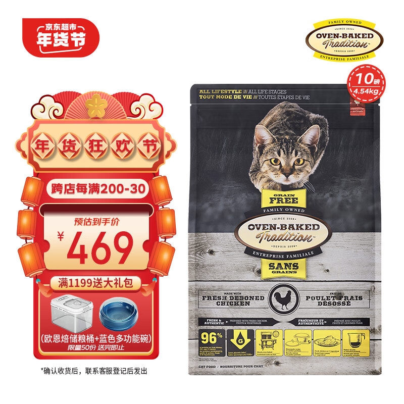 欧恩焙加拿大无谷进口猫粮幼猫成猫烘焙猫粮鸡肉味10磅【4.54kg】价格:579.00元!