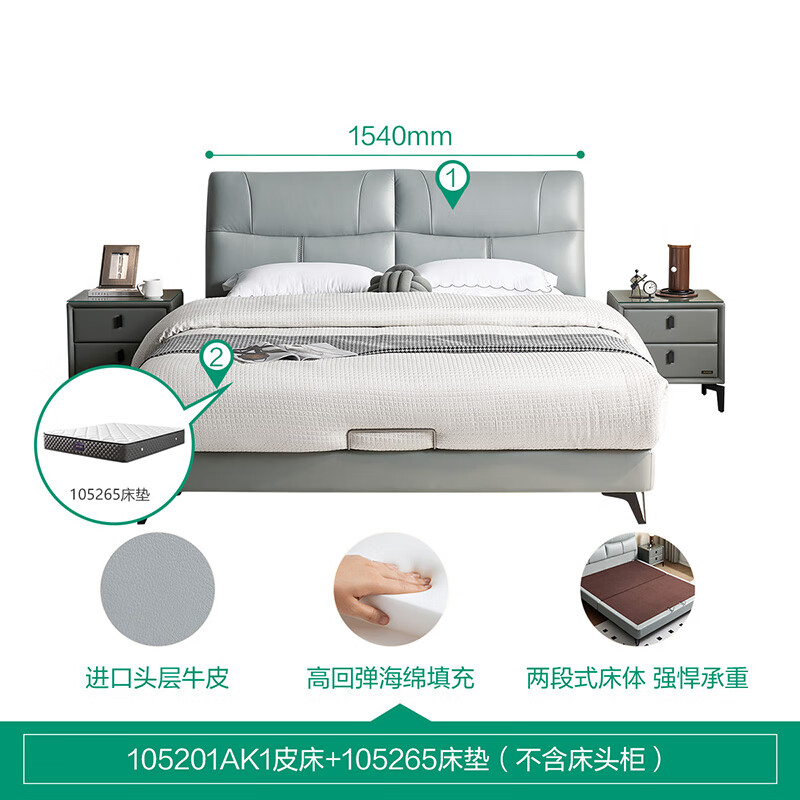 全友家居 意式轻奢皮床卧室头层牛皮床屏双人1.8米皮床105201A价格:3955.71元!
