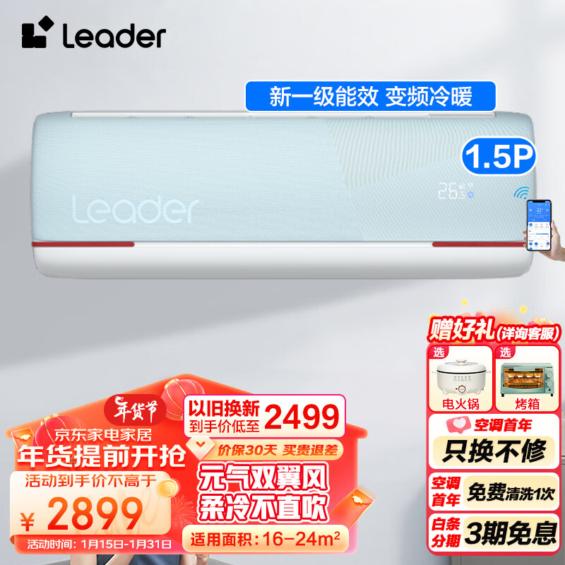 Leader空调海尔智家出品大1.5匹挂机家用冷暖一级能效变频节能省电自清洁智能壁挂式空调LKB81TU1[家电]价格:2899.00元!