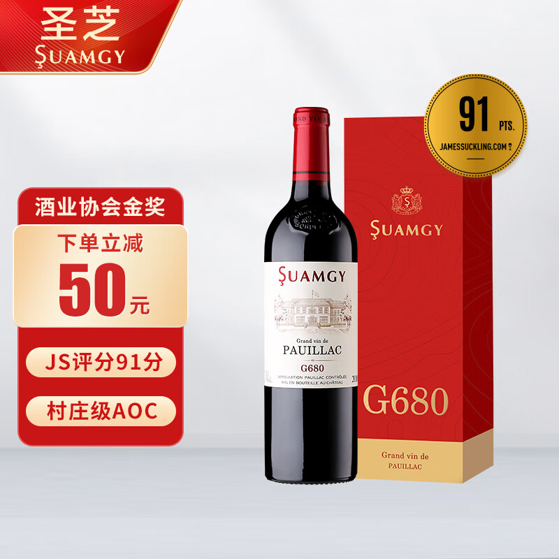 圣芝(Suamgy)G680波亚克AOC 赤霞珠干红葡萄酒 750ml 单瓶装 法国进口红酒价格:528.00元!