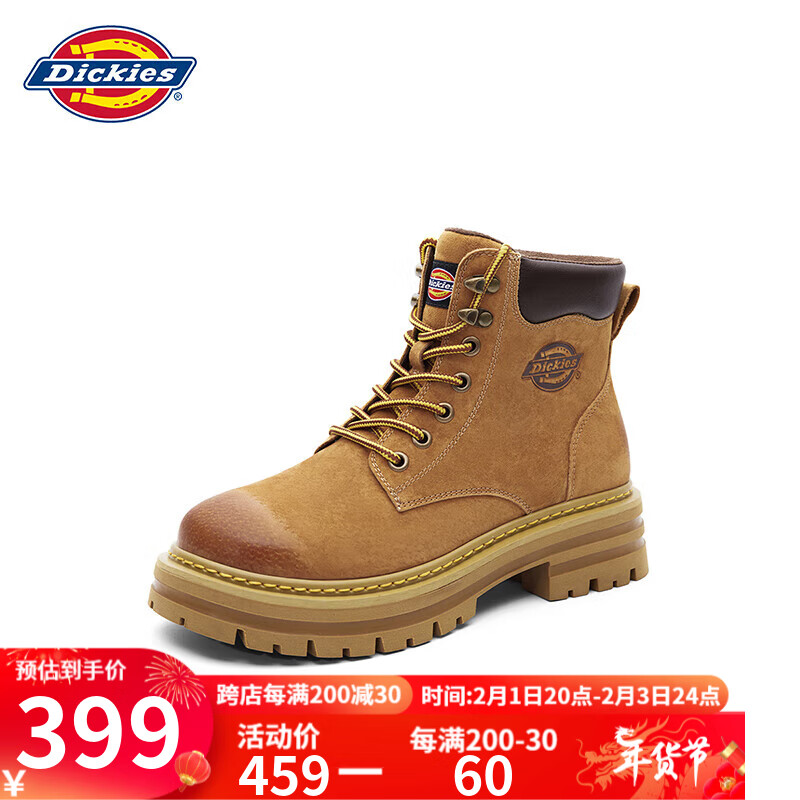 Dickies女士马丁靴高帮时尚情侣靴百搭工装靴女 土黄 女款-37价格:459.00元!