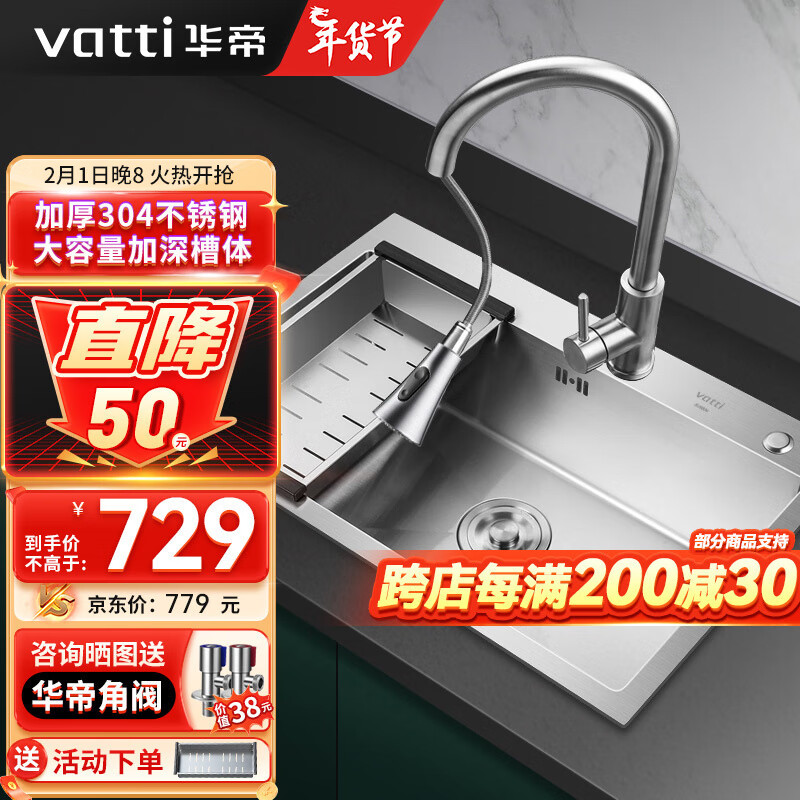 华帝(VATTI)厨房水槽洗菜盆一体盆单槽 大单槽水池盆洗碗槽洗菜池单盘不锈钢价格:1000.00元!