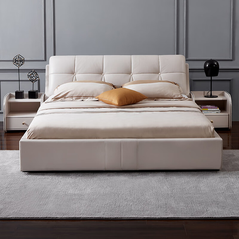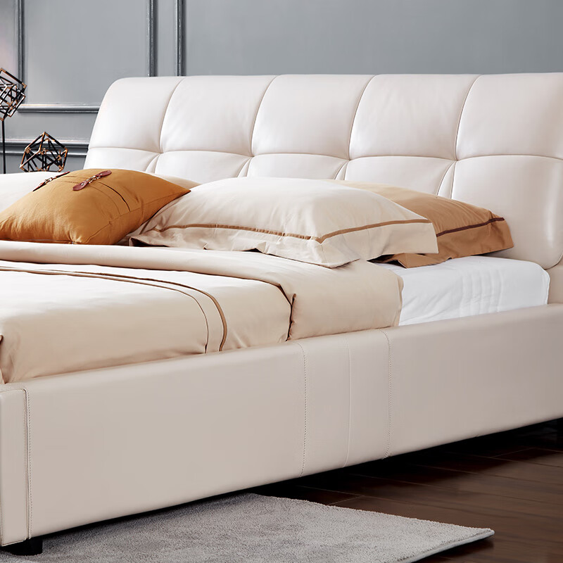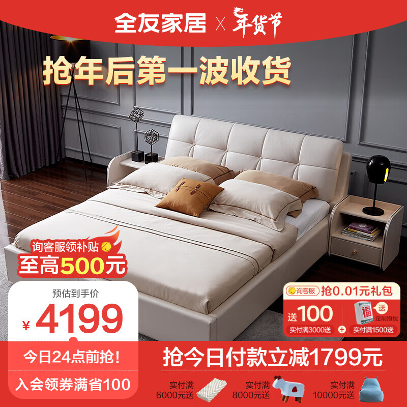 全友家居 双人床头层牛皮床轻奢小户型卧室1.8米婚床105135价格:5998.57元!
