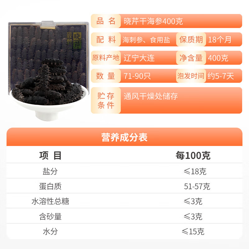 晓芹 大连致甄淡干海参 400g71-90只 辽刺参 海参干货价格:6590.00元!