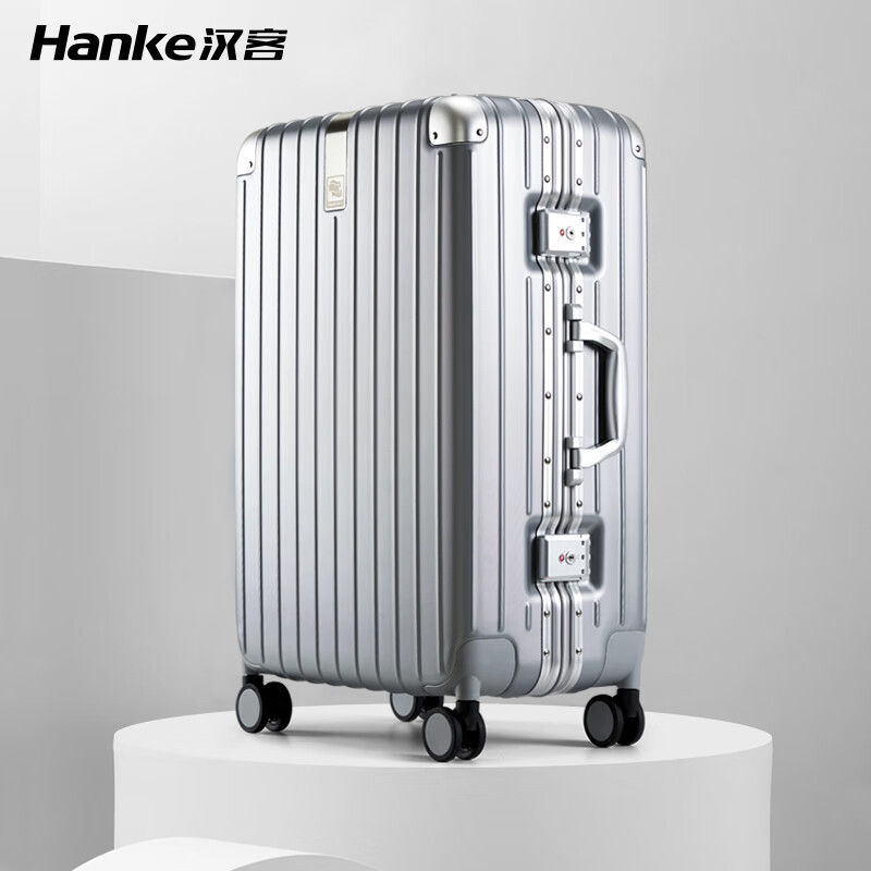 汉客行李箱铝框箱男拉杆箱女旅行箱大容量24英寸浅灰色密码箱防爆耐摔价格:669.00元!