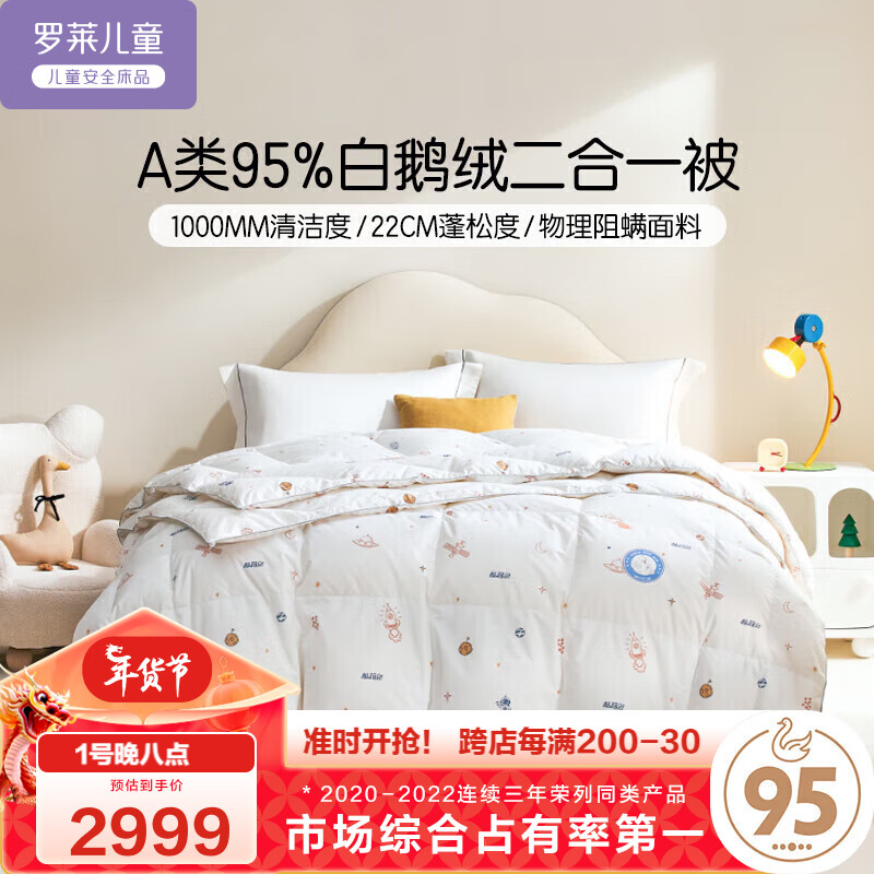 罗莱儿童 暖芯 母婴A类防螨95%白鹅绒羽绒被 子母被 6.4斤200*230cm印花价格:3599.00元!