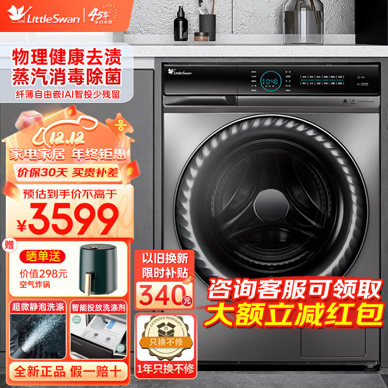 小天鹅(LittleSwan)10公斤家用全自动滚筒洗衣机智能家电 1.08洗净比 超微净泡水魔方护形 手机智控 智能投放洗涤剂价格:3699.00元!