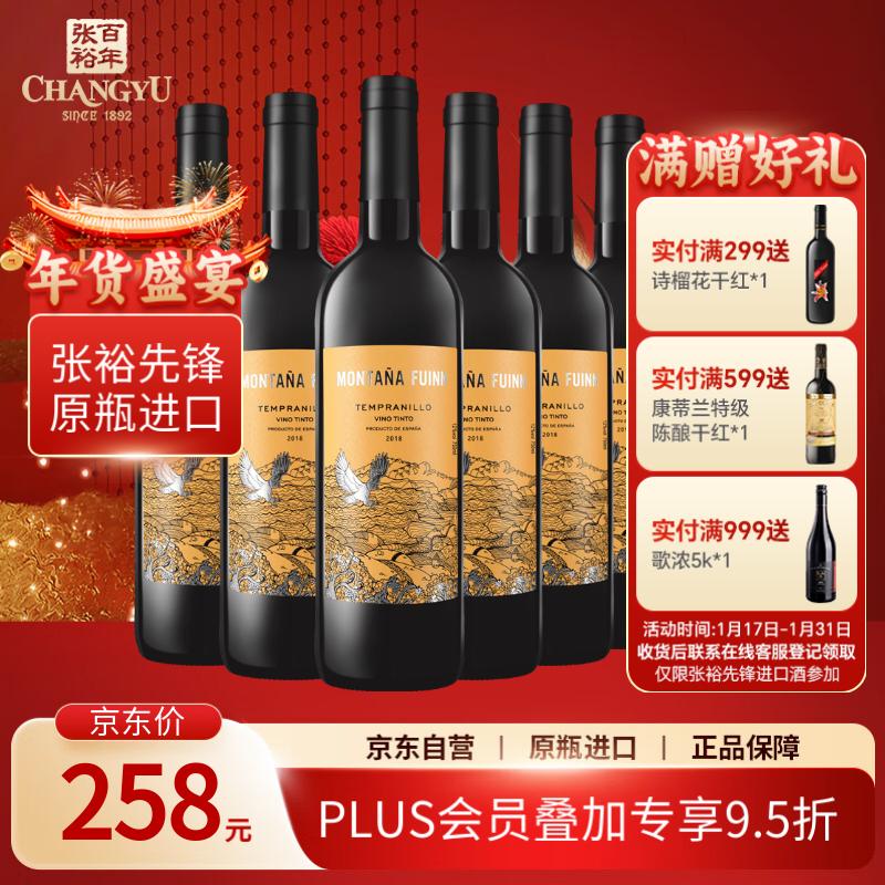 张裕先锋 西班牙富茵山 干红葡萄酒 750ml*6瓶 整箱装 进口红酒价格:258.00元!