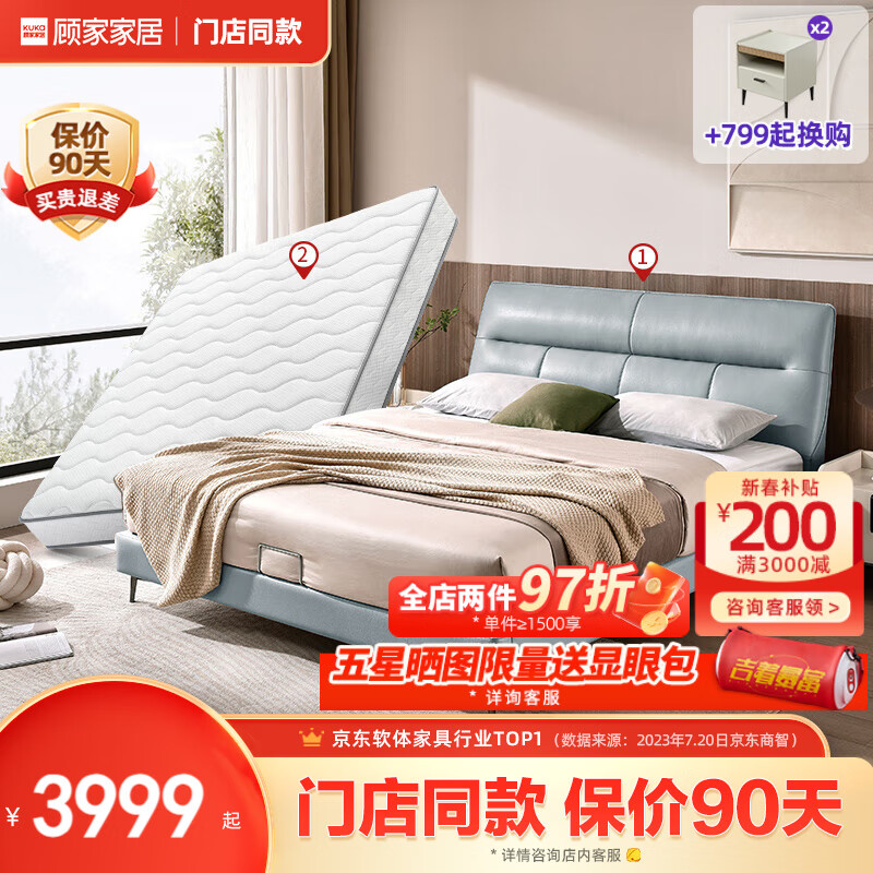 顾家家居(KUKA)简约皮床奶油风双人床8072 +M0081加勒比蓝1.8米年后批发货价格:3999.00元!