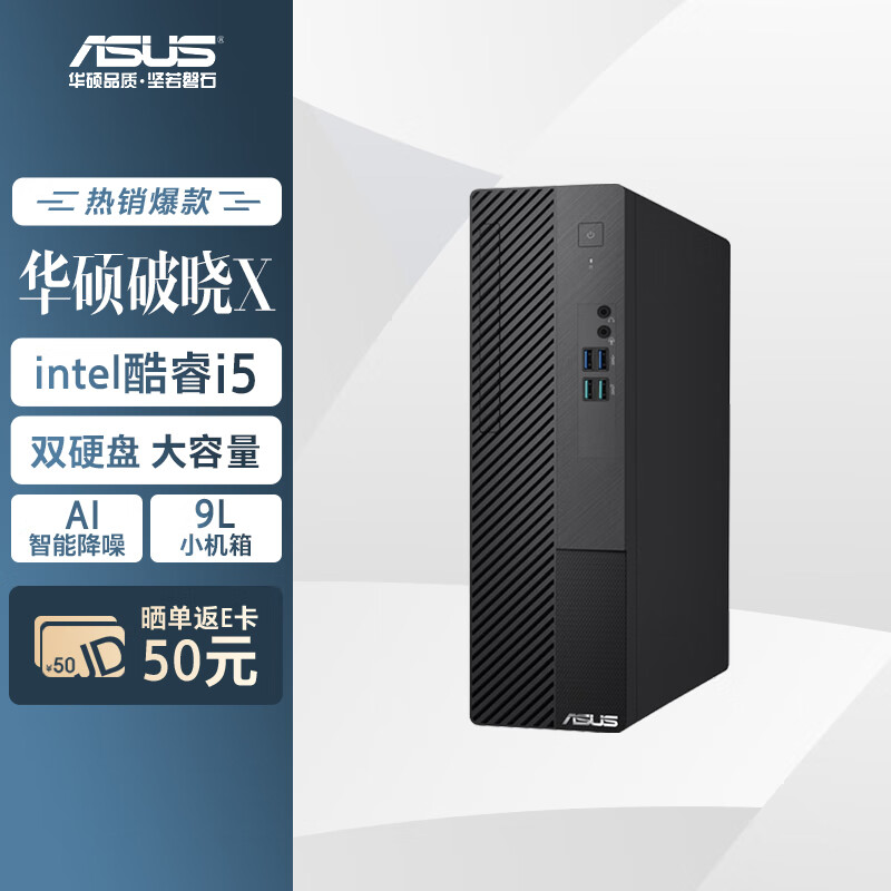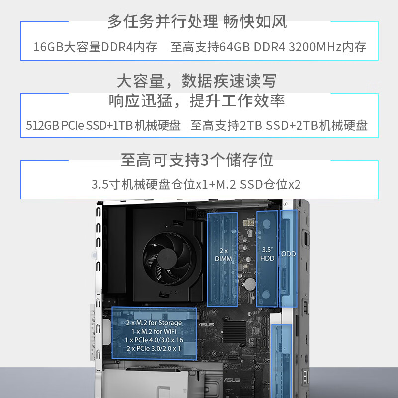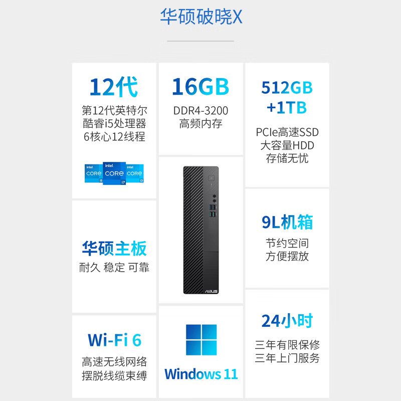 华硕破晓X 个人办公家用商用台式机电脑主机(12代intel i5-12400 16G 512GSSD+1T wifi 小机箱)价格:2939.00元!