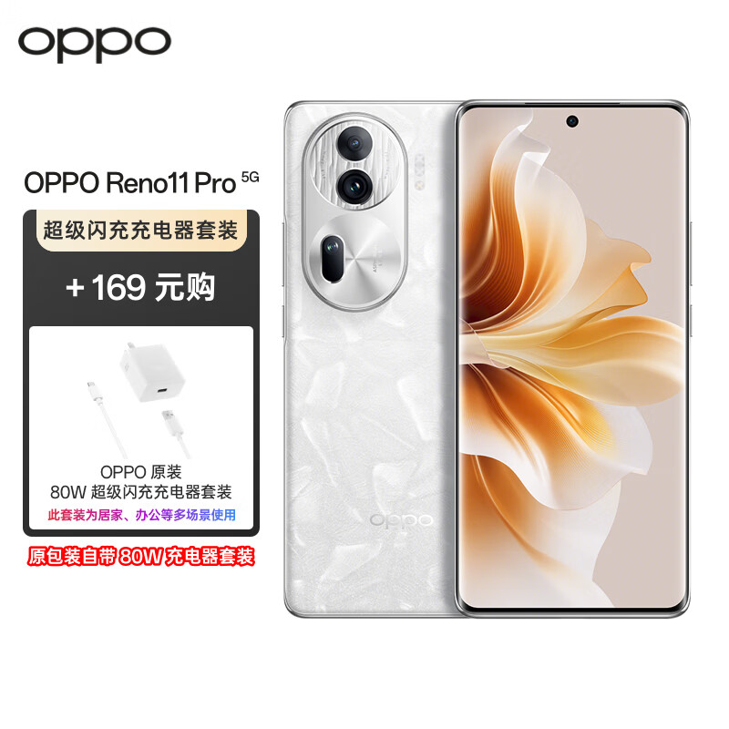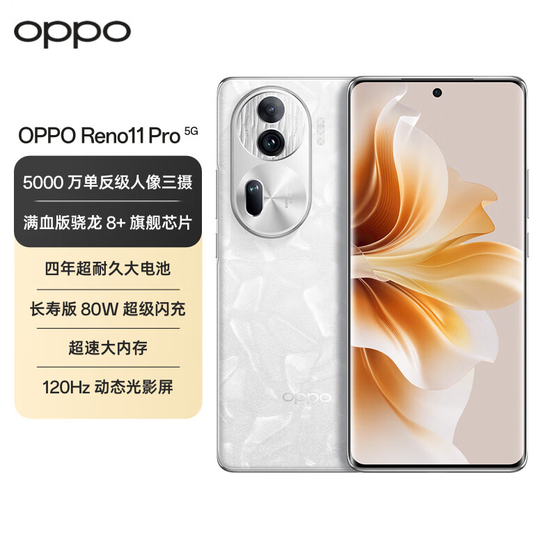 OPPO Reno11 Pro 12GB+256GB 月光宝石 单反级人像 骁龙8+旗舰芯 5G拍照手机【80W充电器备用套装】价格:3468.00元!