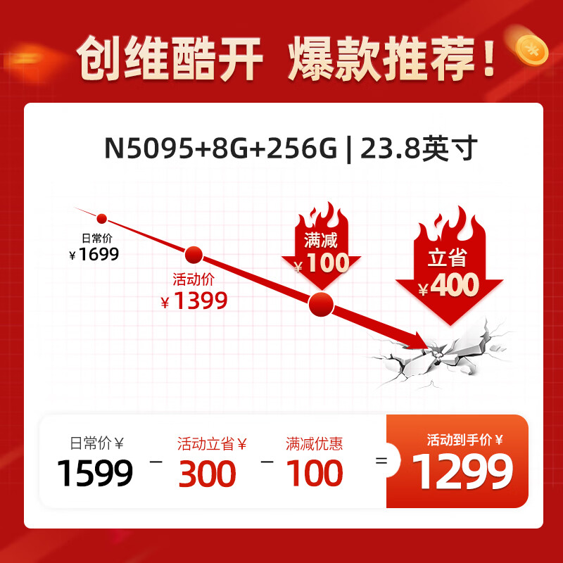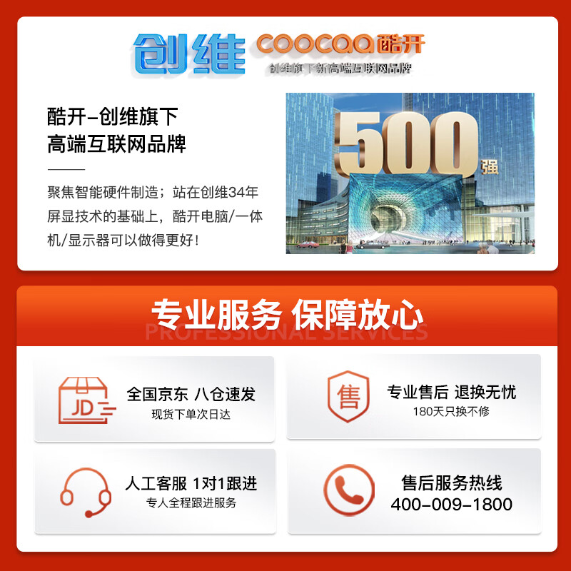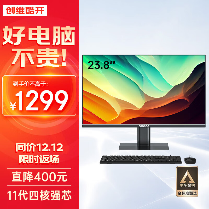酷开 创维电脑 23.8英寸办公商用家用娱乐一体机台式电脑(11代N5095 8G 256G SSD 双频WiFi 蓝牙)价格:1399.00元!