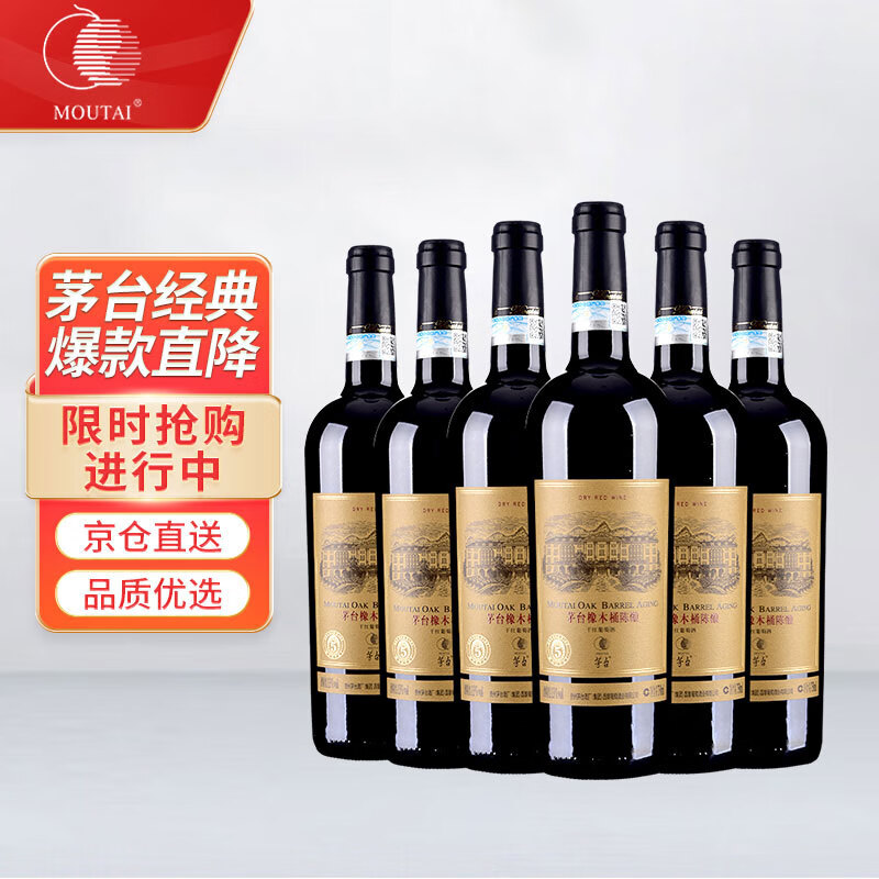 茅台(MOUTAI)橡木桶系列陈酿5干红葡萄酒750ml 整箱【年货送礼】价格:658.00元!