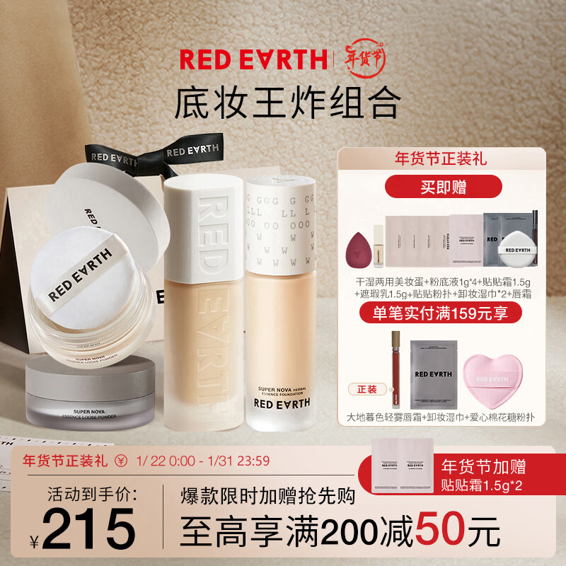 红地球(red earth)粉底液F400L30g+散粉6.5g遮瑕干皮养肤控油持久礼盒送女友老婆价格:215.00元!