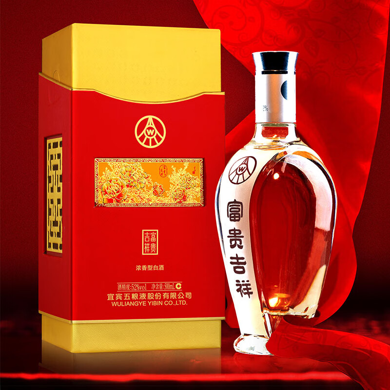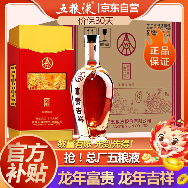 五粮液富贵吉祥牡丹浓香型白酒礼盒整箱6瓶52度500ml龙年货喜酒送礼酒水价格:719.00元!