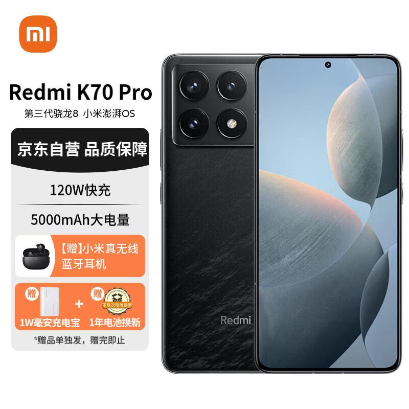 小米(MI)Redmi K70 Pro 第三代骁龙? 8 小米澎湃OS 第二代2K屏 24GB+1T 墨羽 小米红米K70 Pro 价格:4399.00元!