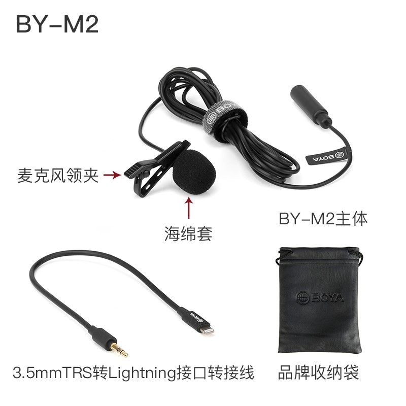 BOYA 博雅麦克风BY-M2领夹式手机麦克风胸麦 手机直播带货vlog短视频网课收录音衣领话筒兼容于苹果手机 6米价格:210.00元!