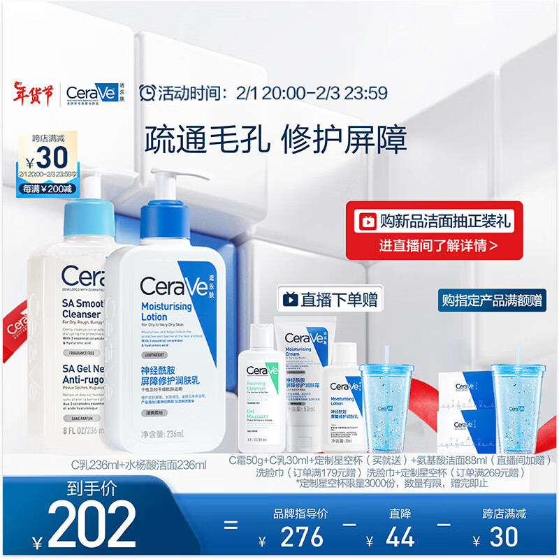 适乐肤(CeraVe)水润嫩肤套装(C乳236ml+水杨酸洁面236ml)保湿润肤清洁护肤品礼物价格:232.00元!