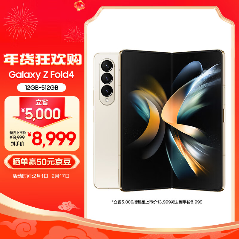 三星 SAMSUNG Galaxy Z Fold4 5G折叠屏手机 沉浸大屏体验 12GB+512GB 云粉金 游戏手机价格:8999.00元!