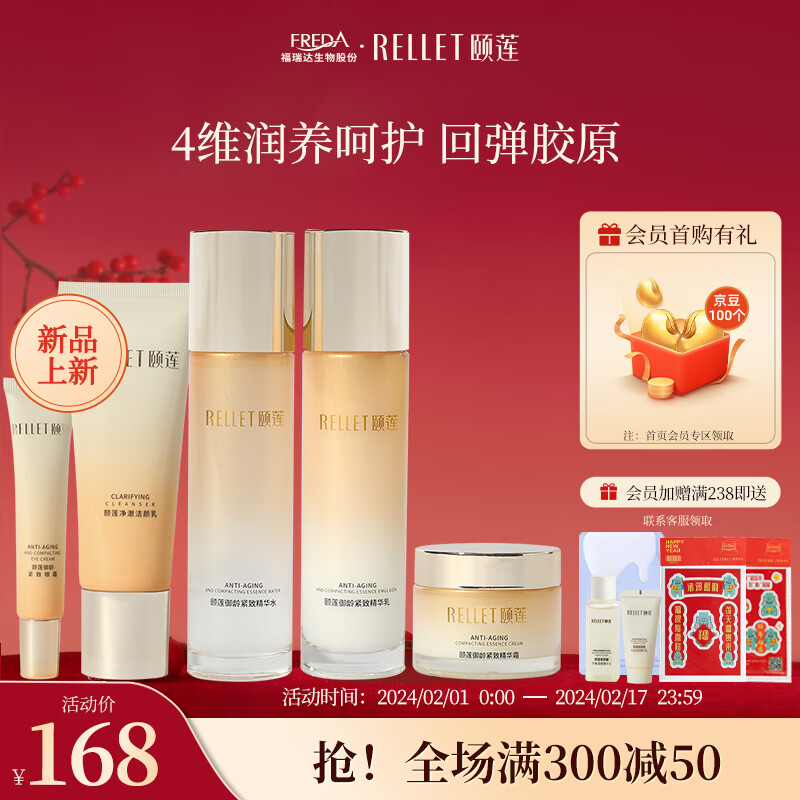 颐莲(RELLET)玻尿酸补水保湿 紧致臻享礼盒5件套 (面霜+水乳+洁颜乳+眼霜)价格:168.00元!