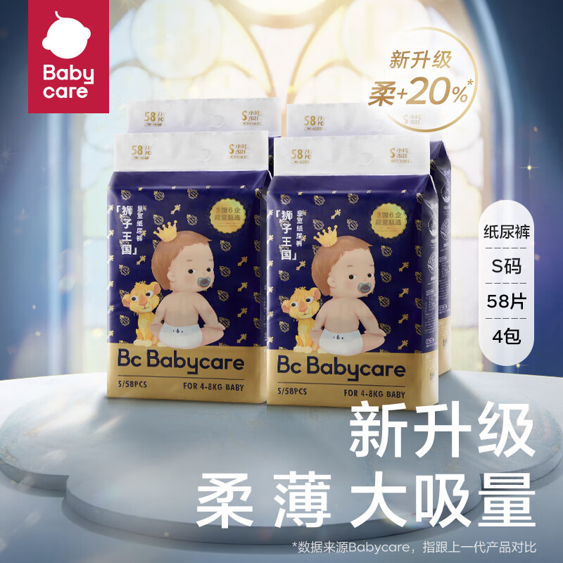 babycare皇室狮子王国纸尿裤新生儿尿不湿弱酸亲肤箱装S58片*4包(4-8kg)价格:632.00元!
