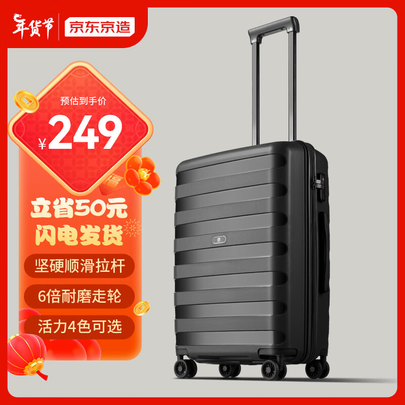 京东京造 飞行家行李箱大容量男女拉杆箱24英寸 旅行箱学生密码箱 炭黑价格:299.00元!