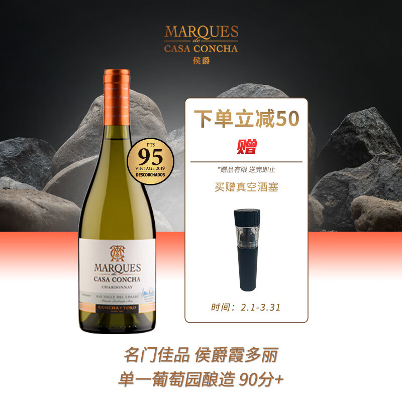Concha y Toro干露侯爵进口特酿霞多丽干白葡萄酒750ml单瓶 约会聚餐红酒价格:299.00元!