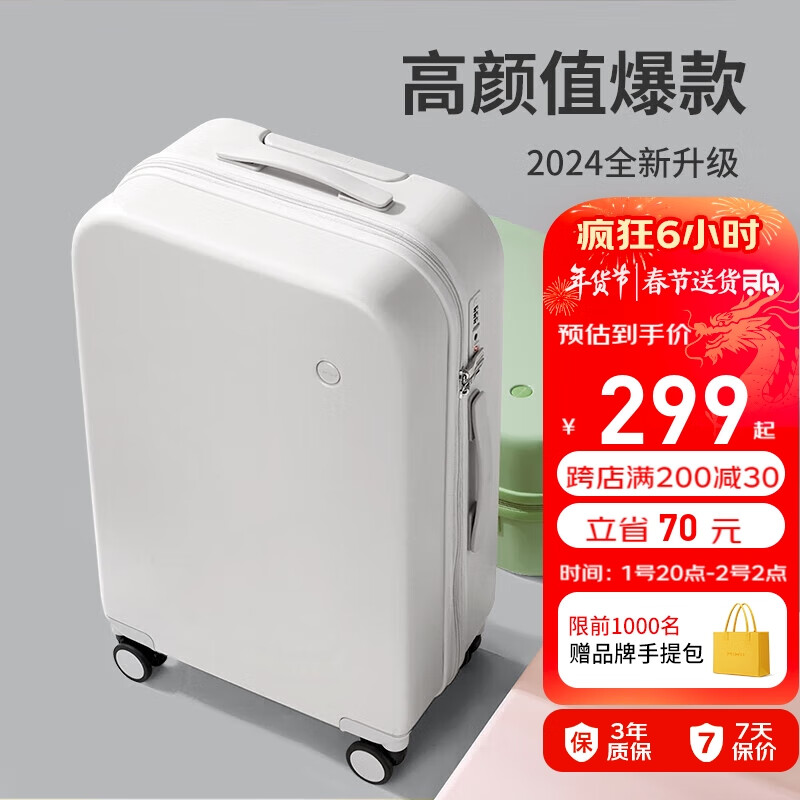 米熙拉杆箱子行李箱大容量女密码箱男旅行箱包登机箱20英寸烟白高颜值价格:369.00元!