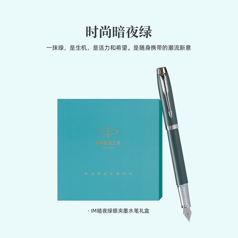 派克(PARKER)钢笔礼盒 商务送礼 签字笔 男女学生练字书法文具 生日礼物 IM苍翠绿墨水笔+大都会杭州礼盒价格:618.00元!