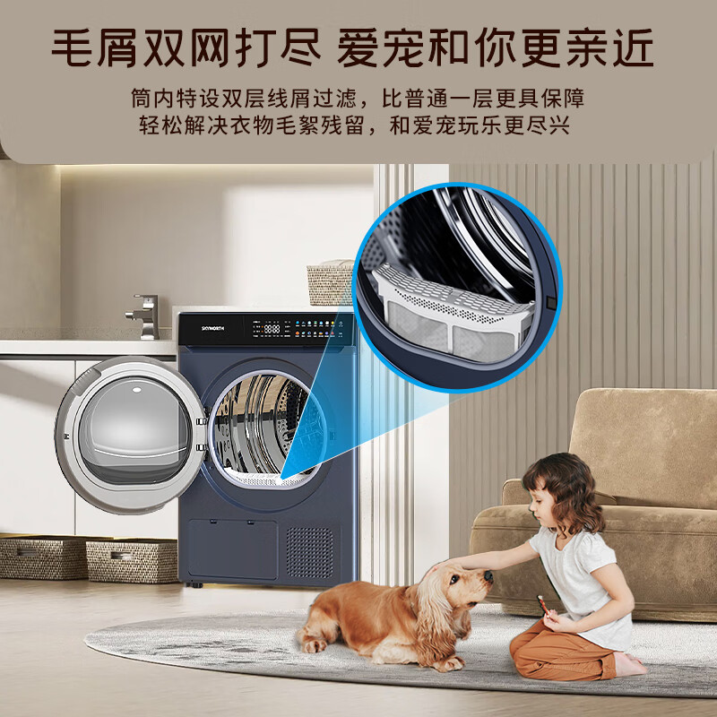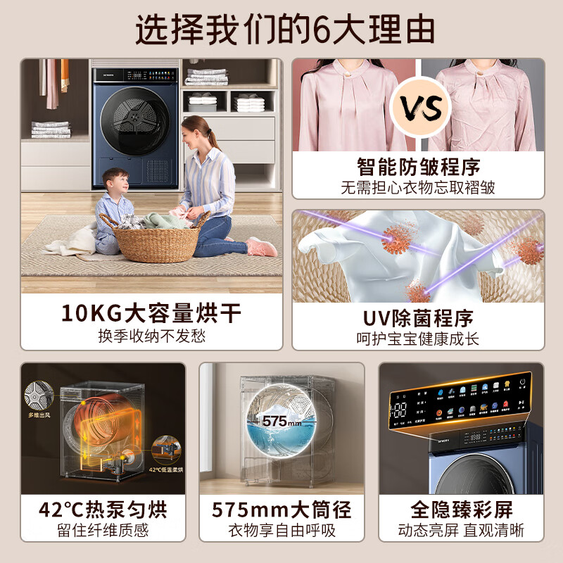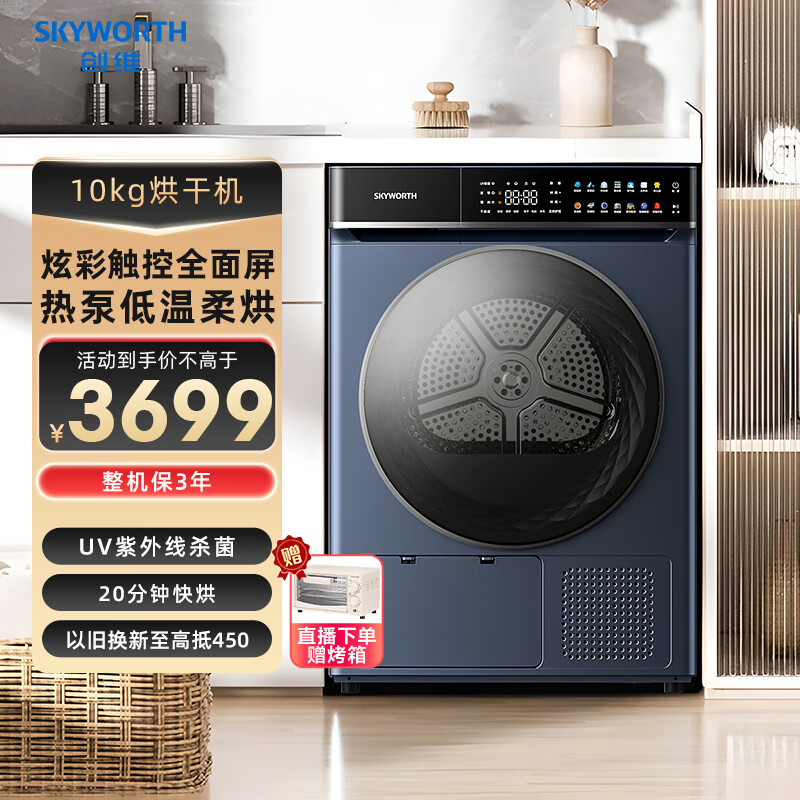 创维(SKYWORTH)烘干机家用 10公斤热泵干衣机 烘衣机紫外线除菌除潮除螨香薰祛味快烘20分钟XQH100-H61价格:3699.00元!