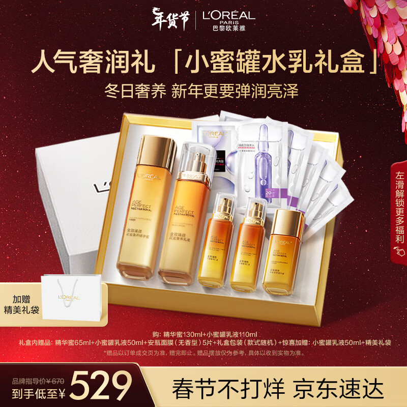 欧莱雅小蜜罐水乳套装 补水保湿抗皱紧致护肤品套装情人节新年礼物女价格:529.00元!