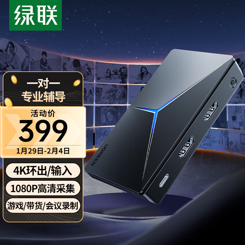 绿联 HDMI视频采集卡4K输入环出 适用Switch/PS5手机笔记本电脑主机相机摄像机抖音会议游戏直播录制价格:499.00元!