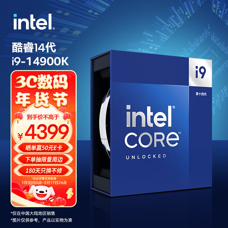 英特尔(Intel) i9-14900K 酷睿14代 处理器 24核32线程 睿频至高可达6.0Ghz 36M三级缓存 台式机盒装CPU价格:4399.00元!