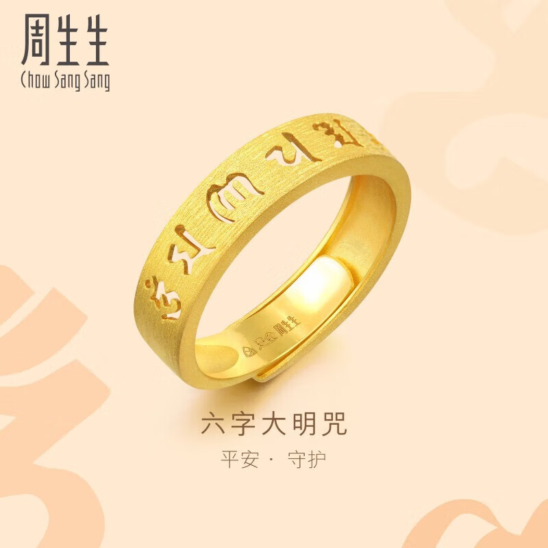 周生生新年礼物足金六字大明咒开口戒男女情侣求婚结婚对戒90212R计价 4.6克价格:3124.00元!