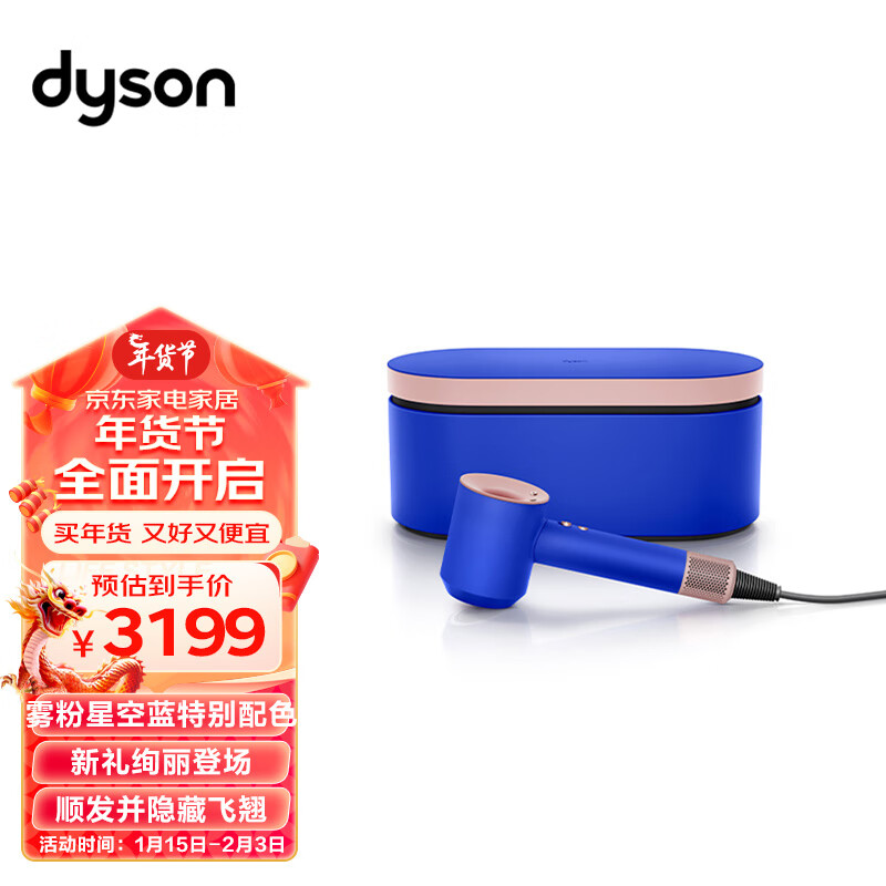 戴森(DYSON)HD15礼盒装高速电吹风机快速干发 顺发 防飞翘 大功率 礼赠推荐 【雾粉星空蓝】 460580-01价格:2999.00元!