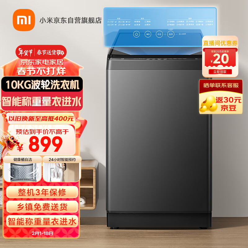 米家小米波轮洗衣机全自动租房宿舍 10KG大容量不锈钢护衣内桶 深层洁净健康桶自洁 XQB100MJ202价格:899.00元!