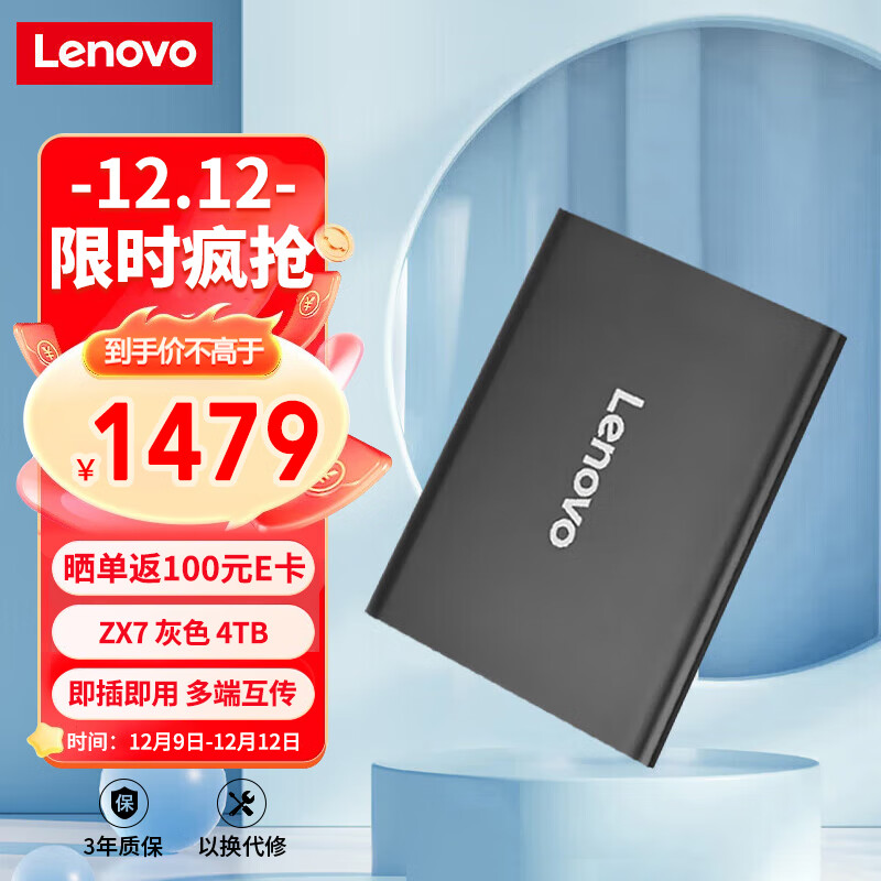 联想(Lenovo) 4TB 移动固态硬盘(PSSD)Type-c USB3.1接口 ZX7系列 灰色价格:1479.00元!