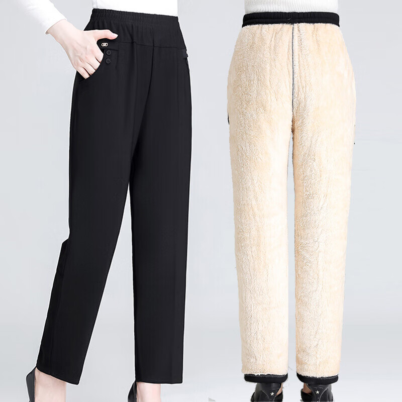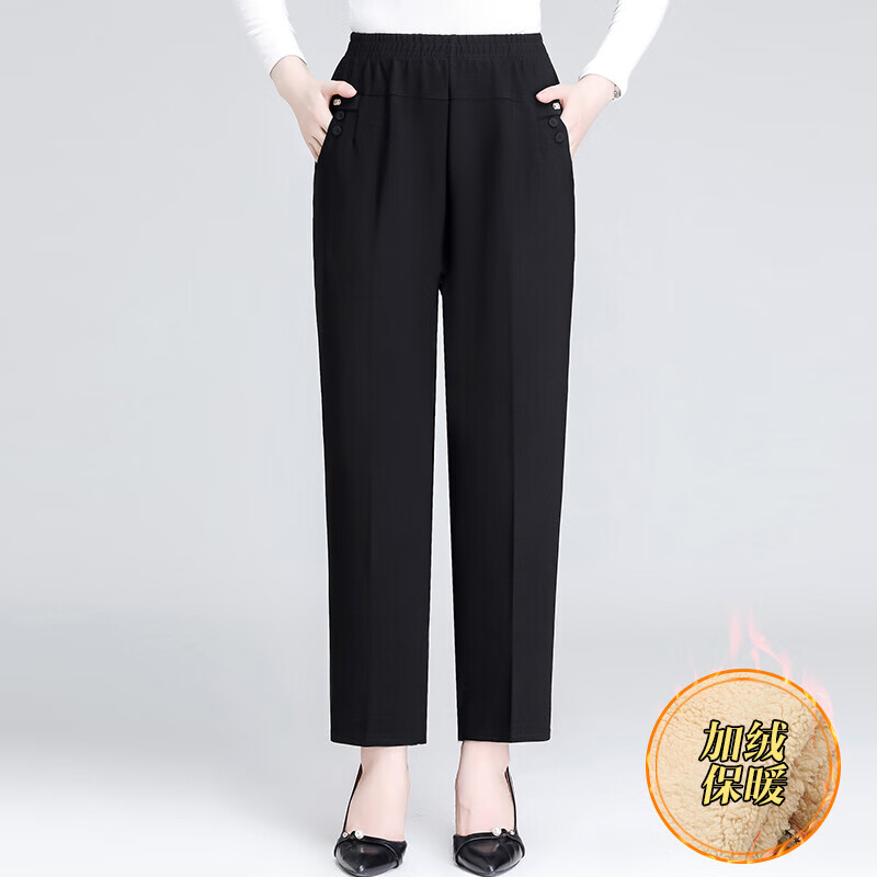 珂源羊妈妈裤子冬款中老年女裤棉裤老年人女奶奶秋冬加绒裤外穿纯黑色 加厚加绒裤 2XL(建议115-130斤左右)价格:138.00元!
